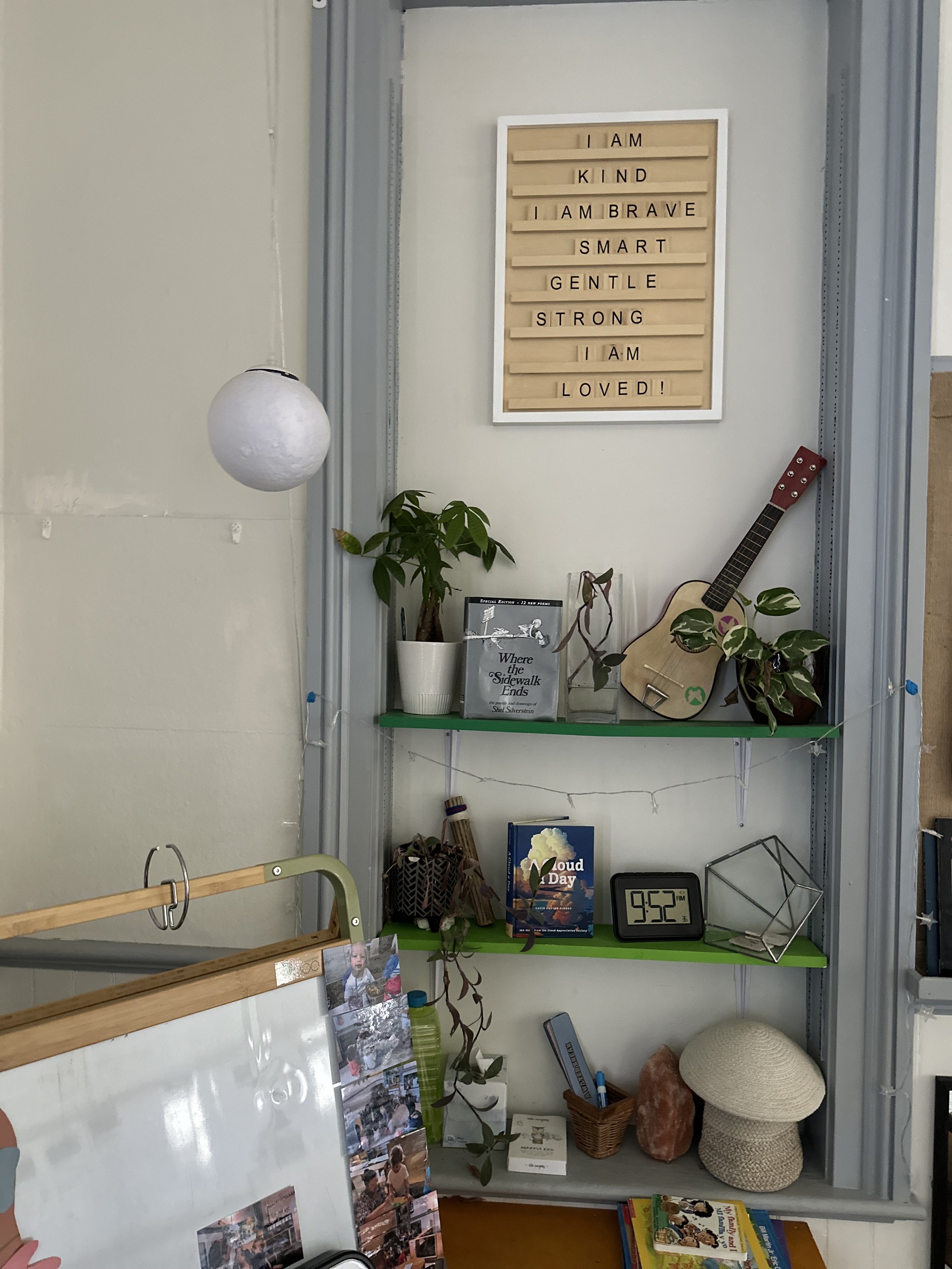 Our social-emotional learning (SEL) approach is woven into every station and corner of the classroom. The environment itself teaches through simple, consistent tools that help children build awareness and confidence. Breathing Balls invite children to pause and regulate. Self-Love Mirrors encourage pride in identity. Energy Friends give them words and visuals for their emotions. The Resting Place, our Cozy Cube, offers a safe spot to regroup and recharge. Kindness Awards highlight empathy and care for others, while Learning Stories document not just what children learn but how they grow socially and emotionally.